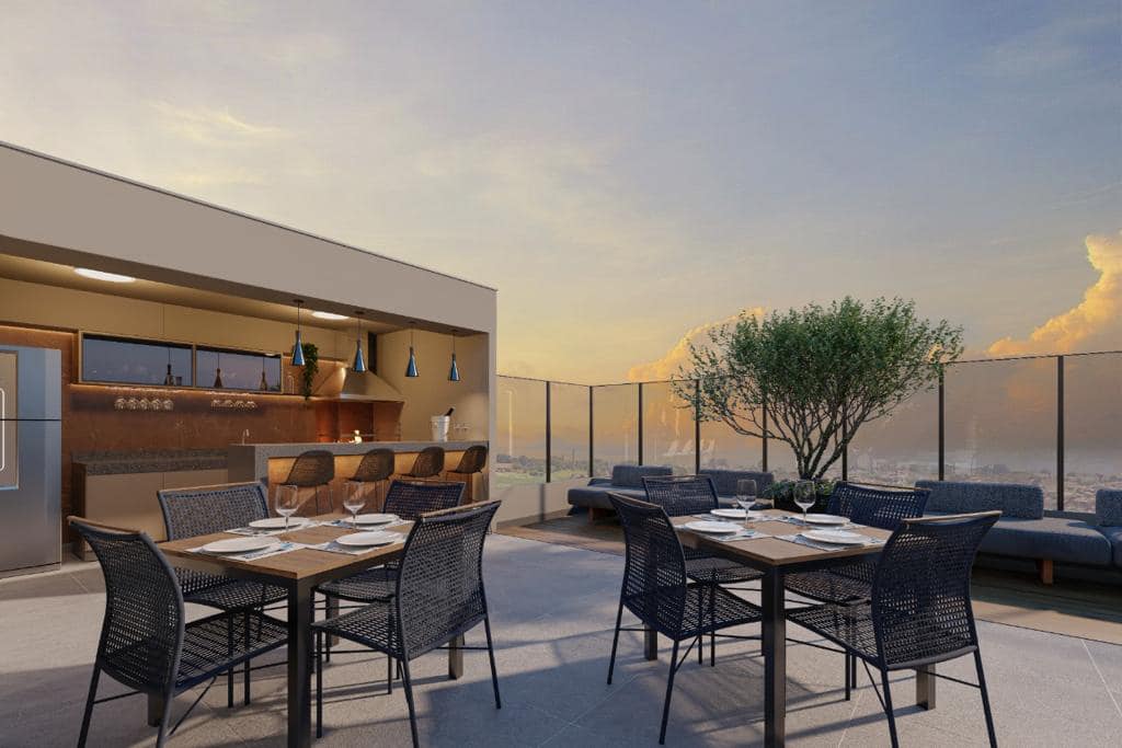 Portaria Guarda-entregas – Depósito de lixo – Salão de festas – Praça de encontro – Espaço gourmet – Varanda externa- Playground- Piscina aquecida – SPA – Deck molhado – Praça luau – Brinquedoteca – Academia Fitness externo – Bicicletário – Espaço teen- Arquibancada – Quadra de areia – Espaço picnic – Pomar – Horta – Pet place.